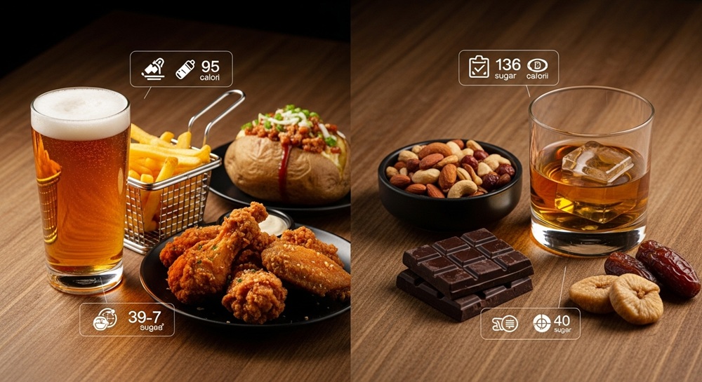 ウイスキーとビールを健康面から比較すると、まず注目すべきはカロリーと糖質です。