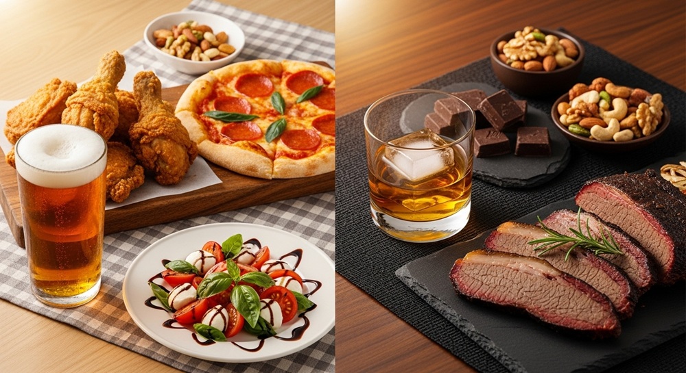 ビールとウイスキーは風味の方向性が異なるため、それぞれに合う料理にも違いがあるようです。