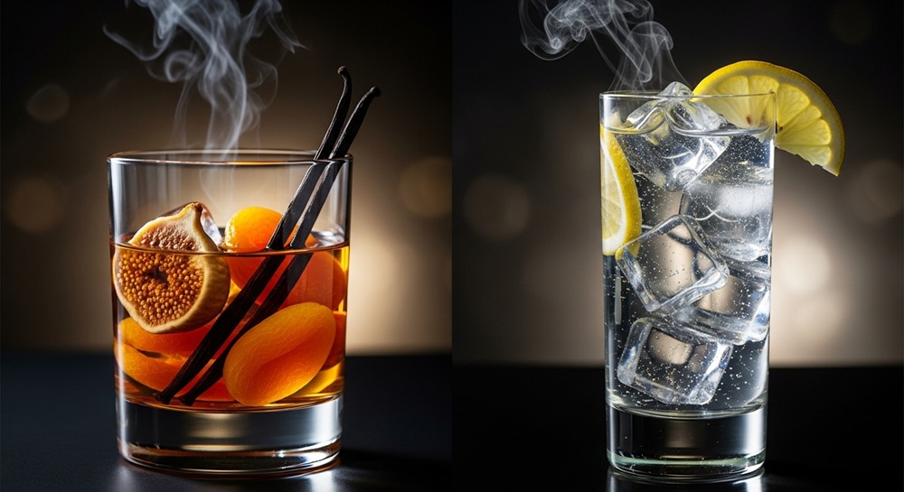 たとえば、落ち着いた夜、香りをじっくり味わいたい場面ではウイスキーをストレートまたはロックでゆったりと。逆に、集まり・軽めの飲み・カクテル主体のシーンではウォッカをベースに冷やしたものや割り材入りで気軽にというような選び方です。