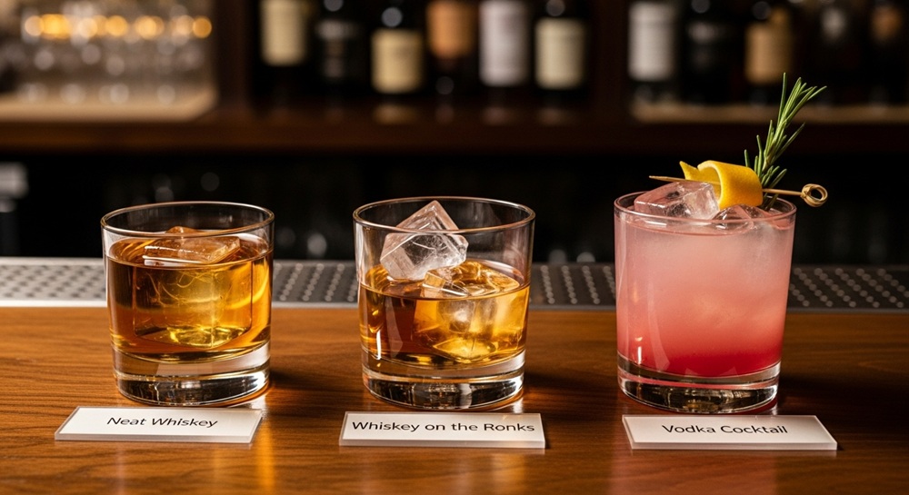 「ストレート(neat)」「ロック(on the rocks)」「カクテル(mixed drink)」という呼び方には、実は国際的に共通化された厳格な定義があります。
