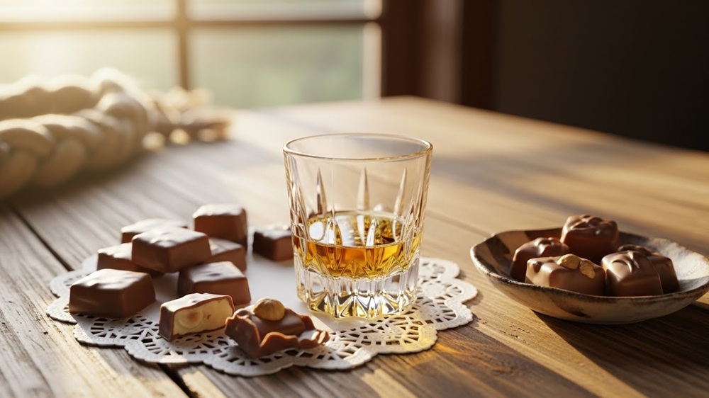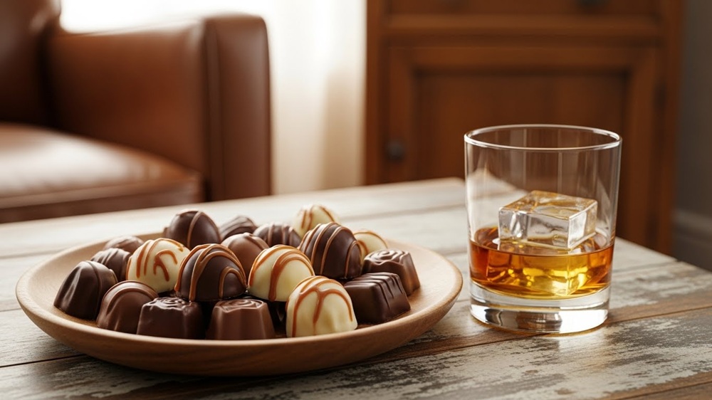 洋酒入りのチョコレートは、もともとアルコールを含んでいるため、ウイスキーとの相性も自然にまとまるのです。