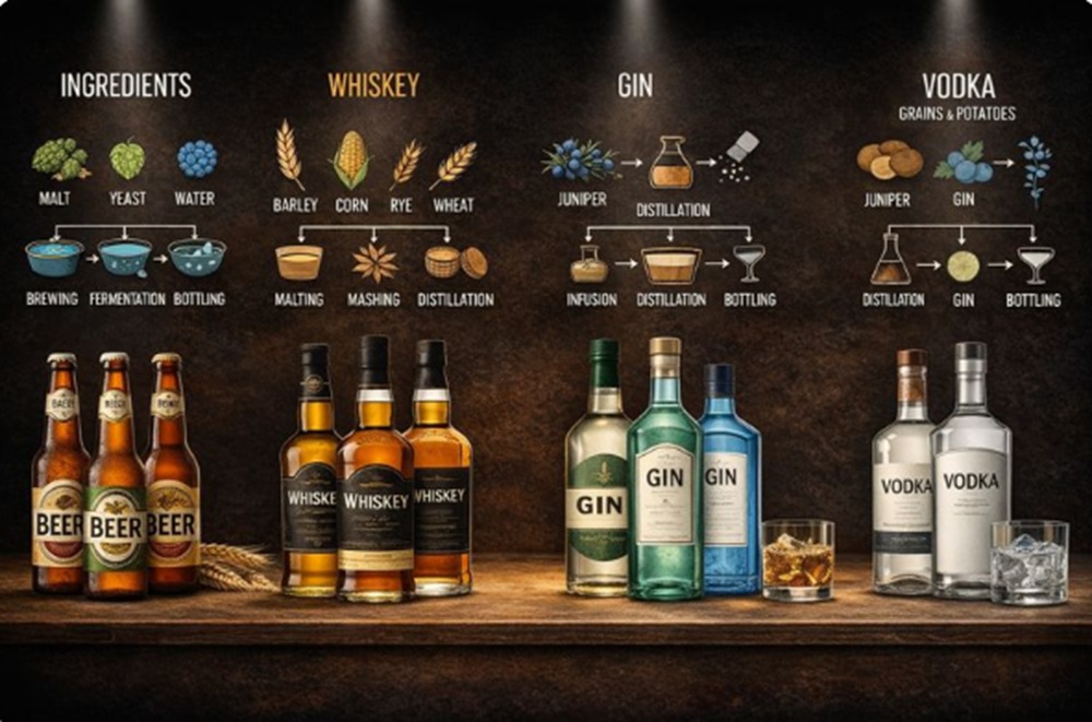 • 種類ごとに原料のルールがある(特にバーボンやスコッチは分かりやすい)