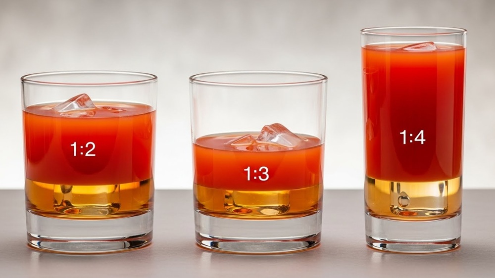 ジュース割りを美味しく作るうえで欠かせないのが「黄金比」です。